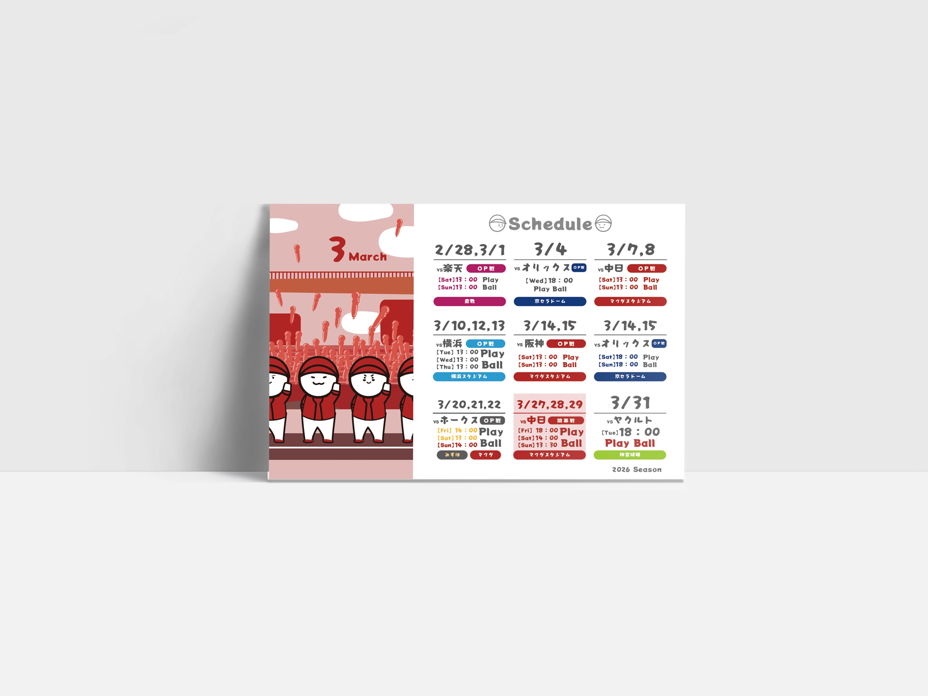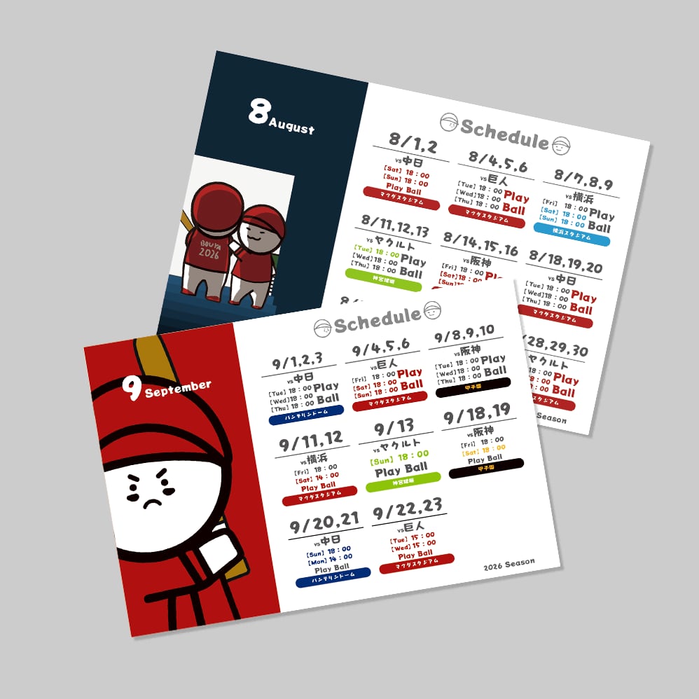 A fan-made calendar created by BOUYA’S, dedicated to supporting a certain “red” baseball team. It gathers all the official game schedules for the 2026 season—perfect for cheering them on all year long.